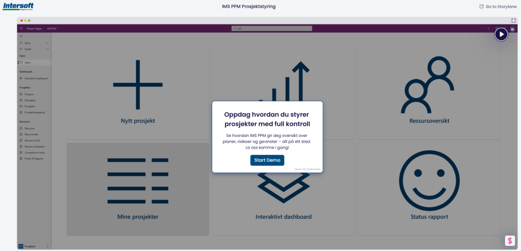 Du kan klikke deg gjennom hvordan vi støtter ressursstyring, prosjektstyring og porteføljestyring – uten behov for innlogging eller opplæring.